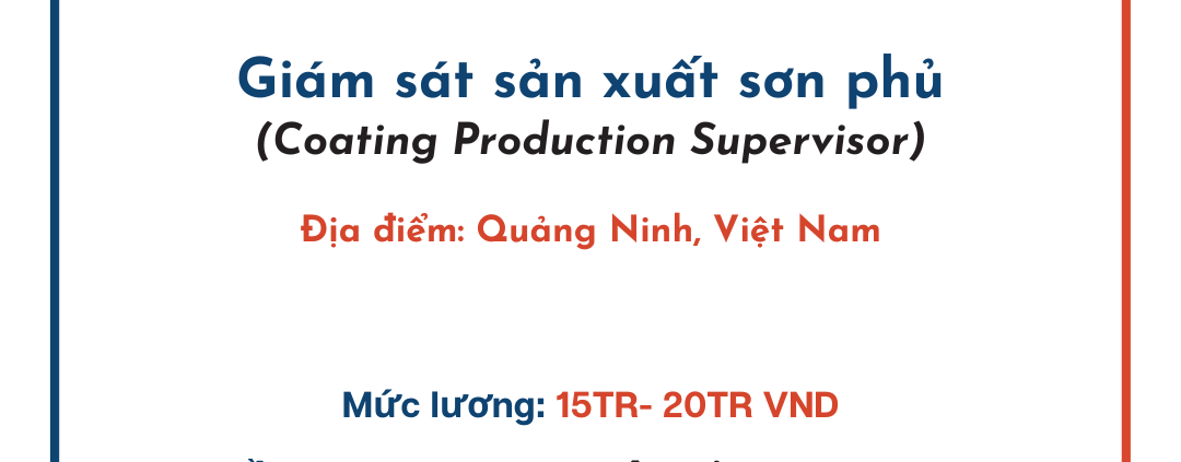 Tuyển dụng Giám sát sản xuất sơn phủ – Coating Production Supervisor